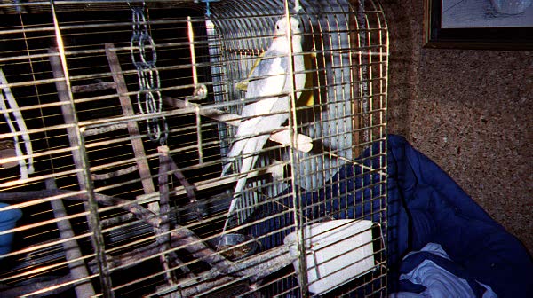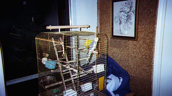 3 Distance shot of the birdcage. The sketch my mother did. the blanket is for covering the bird up -a chore I don't do anymore... fortunately he's used to it now. The bird's name? oh... it's Charlie. | ![]() |