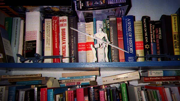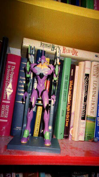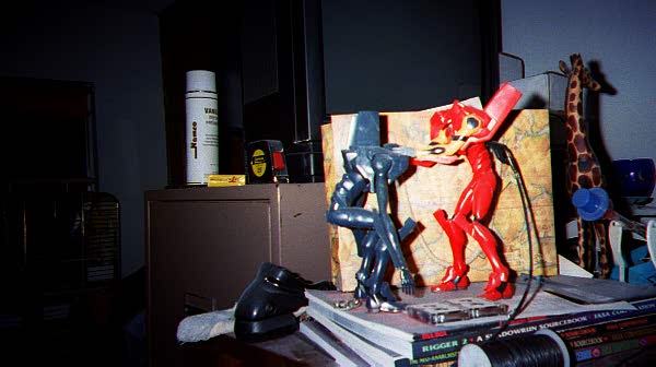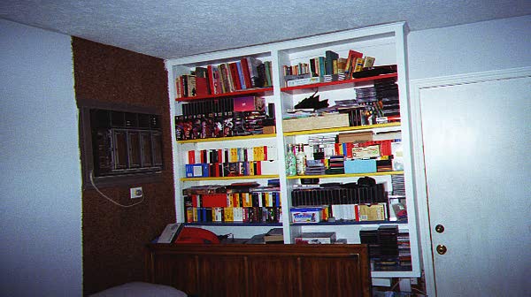 15 The OTHER bookcase... you can also see the headboard for my bed. Also of some note is the air conditioner and ALL MY VIDEO TAPES!!! Towards the upper left one can see my Neon Genesis Evangelion model boxes and on top of that all my pervert tapes... like L4 B1ue G!rl -done to keep off of p()rn lists. | ![]() |